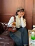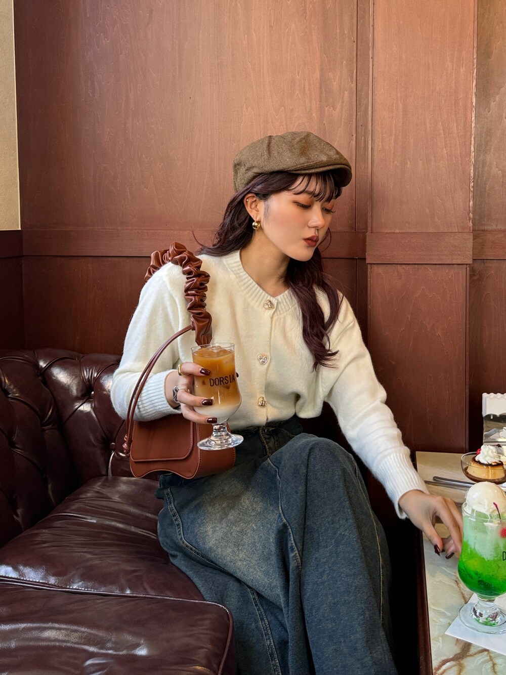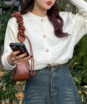 ゴールドのハートボタンが可愛いニット🧶 デニムスカートと合わせて着てみました💓 秋っぽくてバッグはブラウンに👜