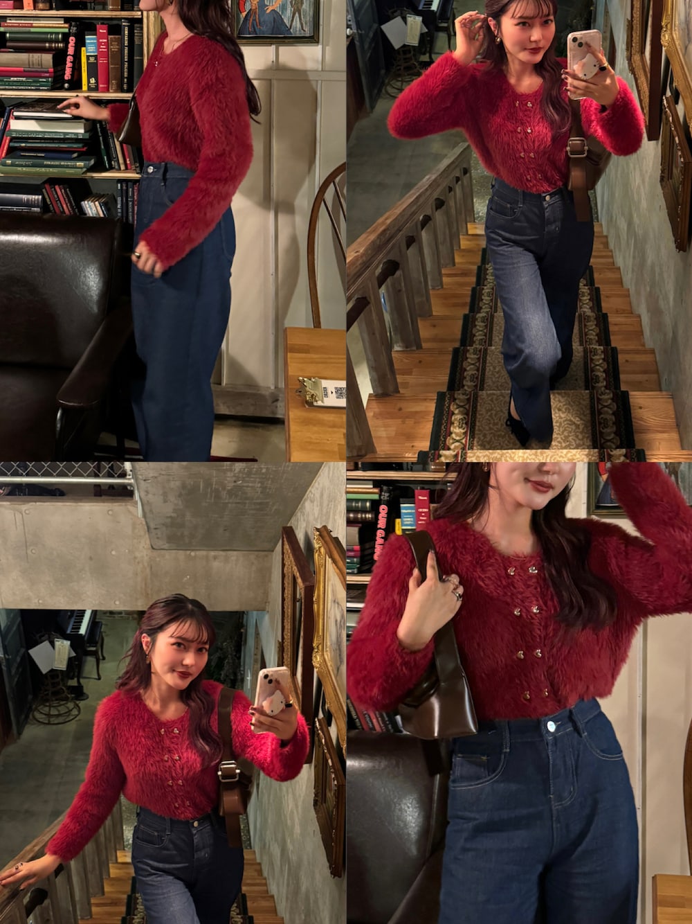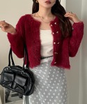 honokaのカーディガン/ボレロ「ゴールド ハート ボタン シャギー ショート ニット カーディガン」を使ったコーディネート
