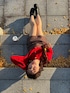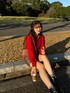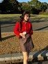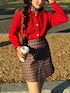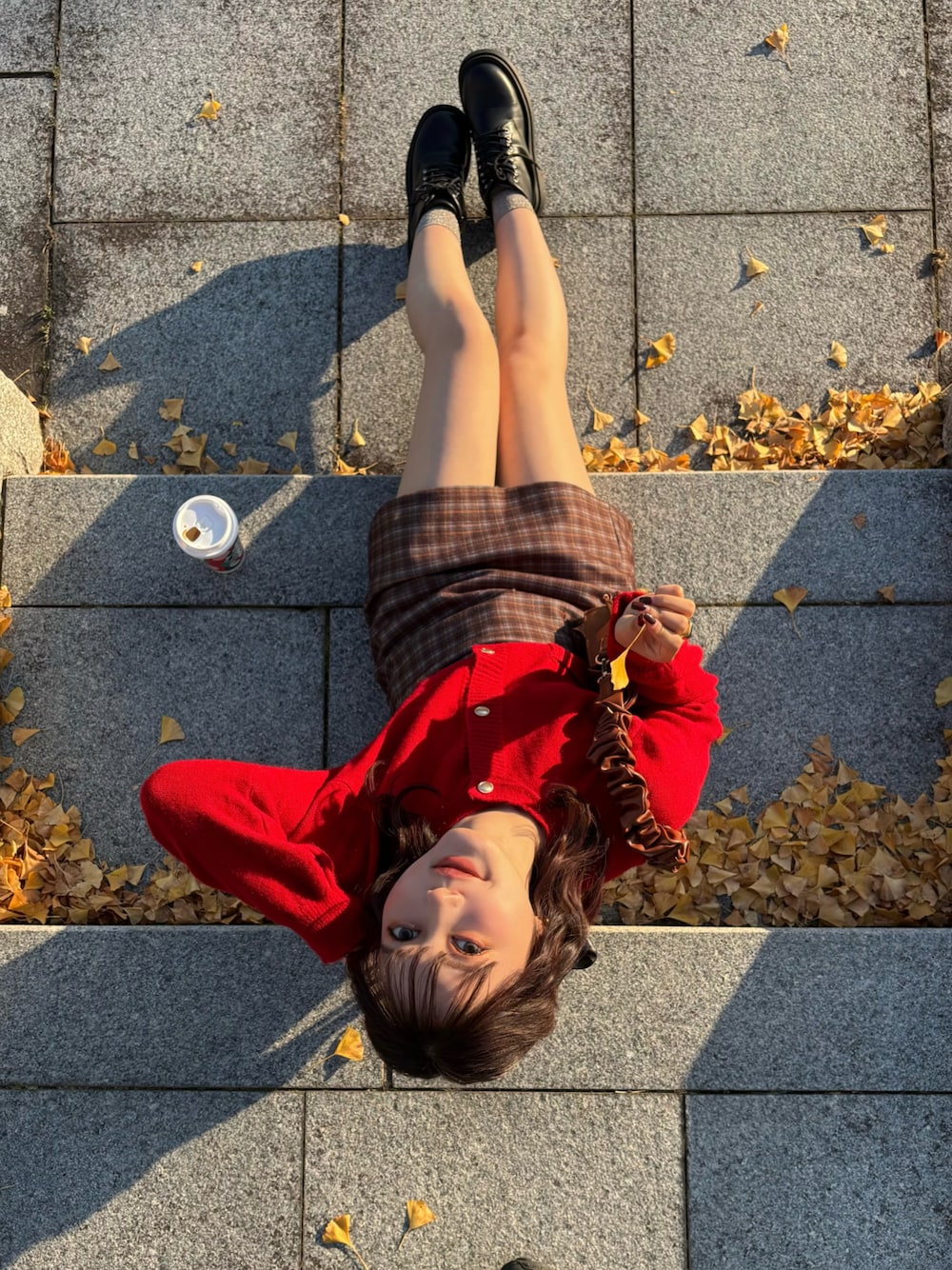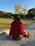 紅葉にぴったりな赤ニット🧶 ブラウンのチェックスカートと合わせて秋っぽくしました…🍂