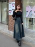 女性らしい雰囲気を出せるオフショルニット🧶 ブラックのオフショルニットなので 大人っぽい雰囲気に✨ デニムスカートと合わせて 綺麗めカジュアルにコーデを組みました💕