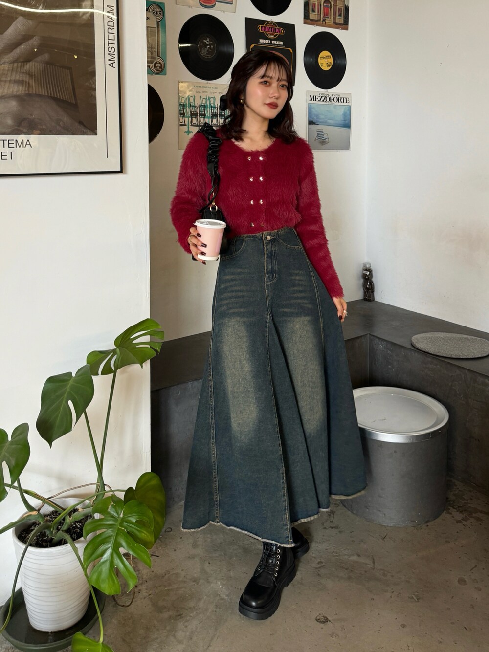 honokaのカーディガン/ボレロ「ゴールド ハート ボタン シャギー ショート ニット カーディガン」を使ったコーディネート