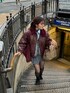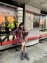 ボルドーカラーのレザージャケットがお洒落で可愛い🙂↕️💕 カジュアルになり過ぎず プリーツスカートと合わせました🫶🏻
