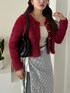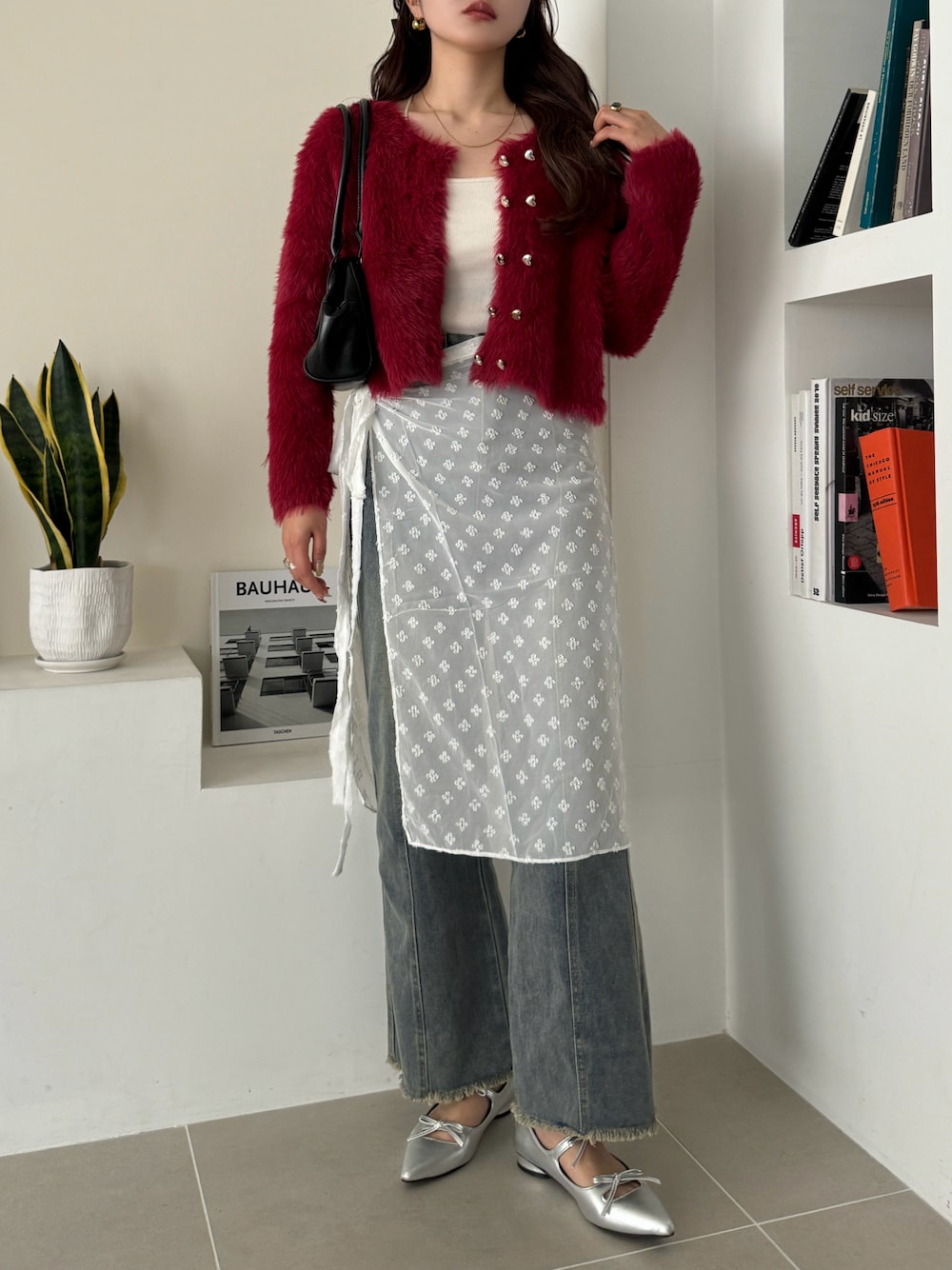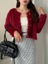 honokaのカーディガン/ボレロ「ゴールド ハート ボタン シャギー ショート ニット カーディガン」を使ったコーディネート