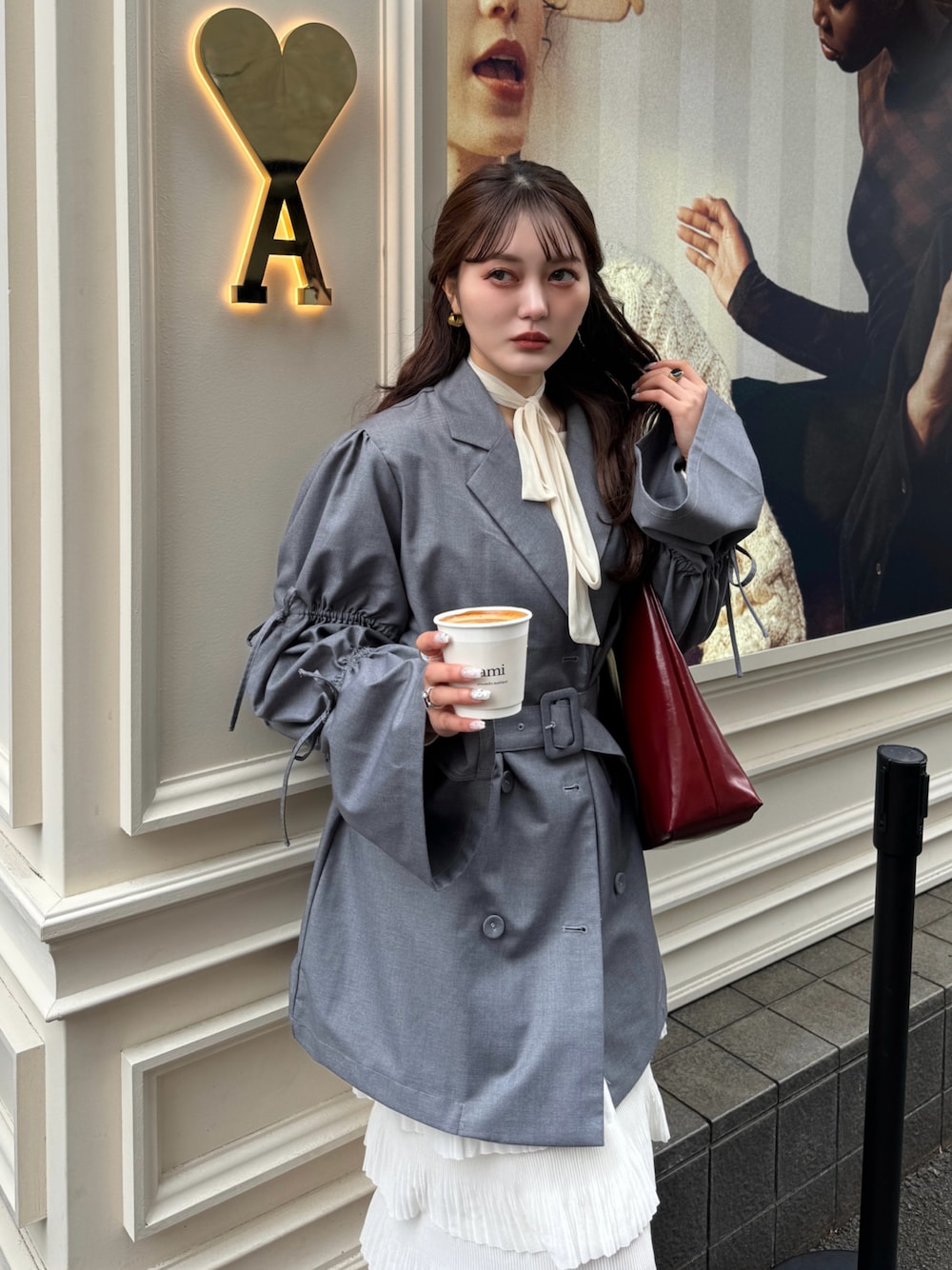 リボンのデザインが可愛いジャケット🧥! 中のコーデは春っぽくチュールを使ったアイテムと合わせました🙂↕️✨ オーバーサイズでウエストマークもできるので メリハリのあるお洒落コーデに👍🏻