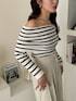 honokaのTシャツ/カットソー「ボーダー オフショルダー トップス」を使ったコーディネート