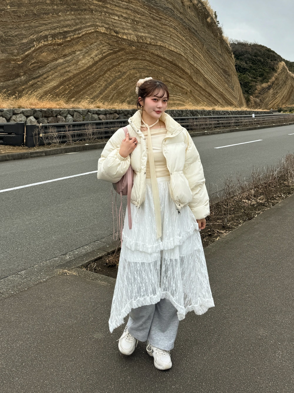 honokaのスカート「フレンチスタイルの ミディアム ロング ドレス レース スカート」を使ったコーディネート