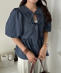 リボンのデザインが可愛いブラウス🎀 今の時期はタートルネック合わせで 夏は1枚で着るの楽しみ🤍