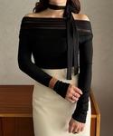 honokaのTシャツ/カットソー「ストール付き シアー オフショル カットソー」を使ったコーディネート