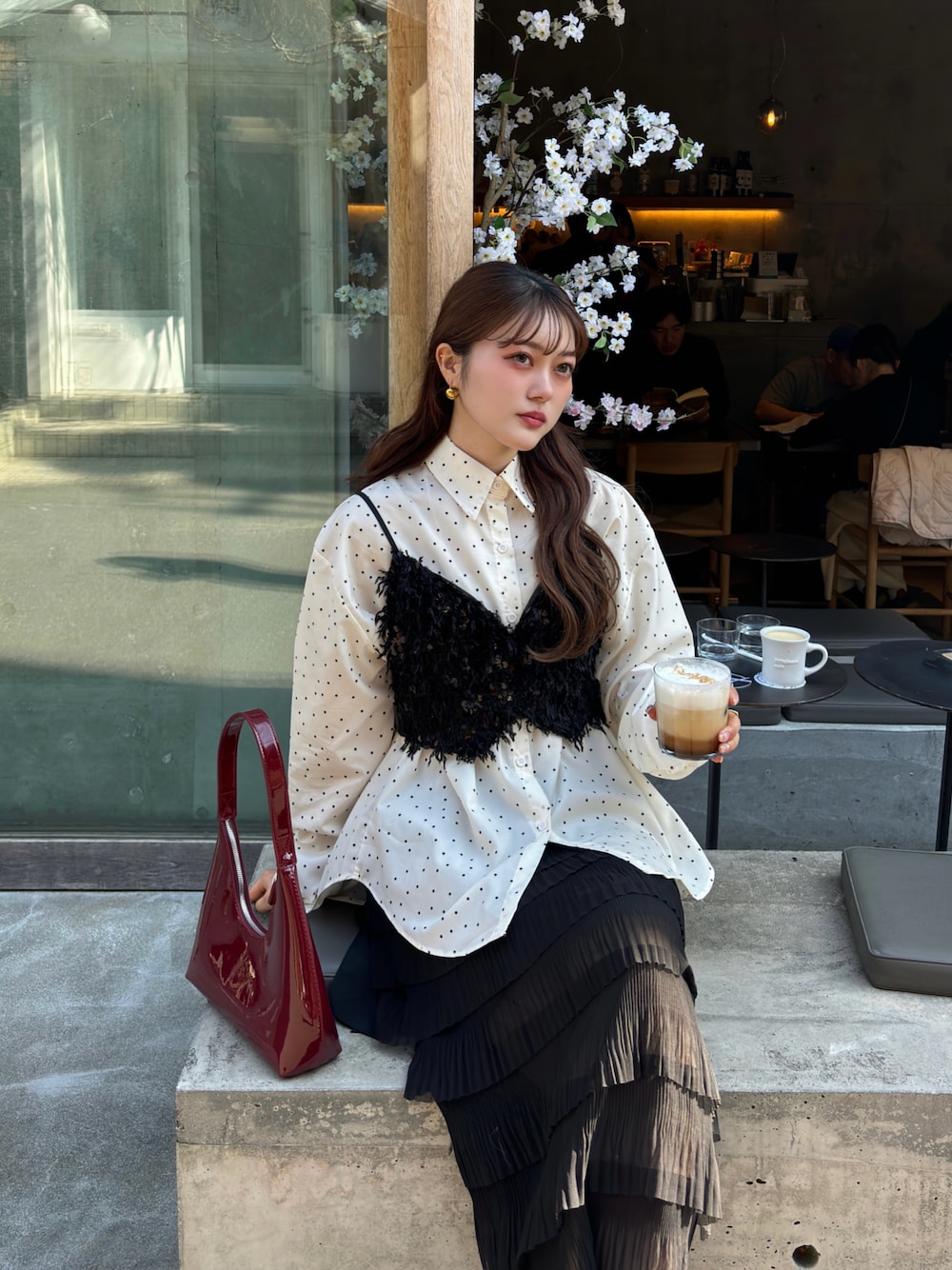 ZOZOTOWNで人気のドットシャツに 黒のティアードスカートを合わせました🏷️ この春はドット柄とチュールアイテムたくさん集めたい~✊🏻💖