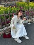 春に着たいジャケットとバルーンスカートを合わせたコーデ🏷️ ミニーちゃんに合わせて鞄は赤にしました❣️