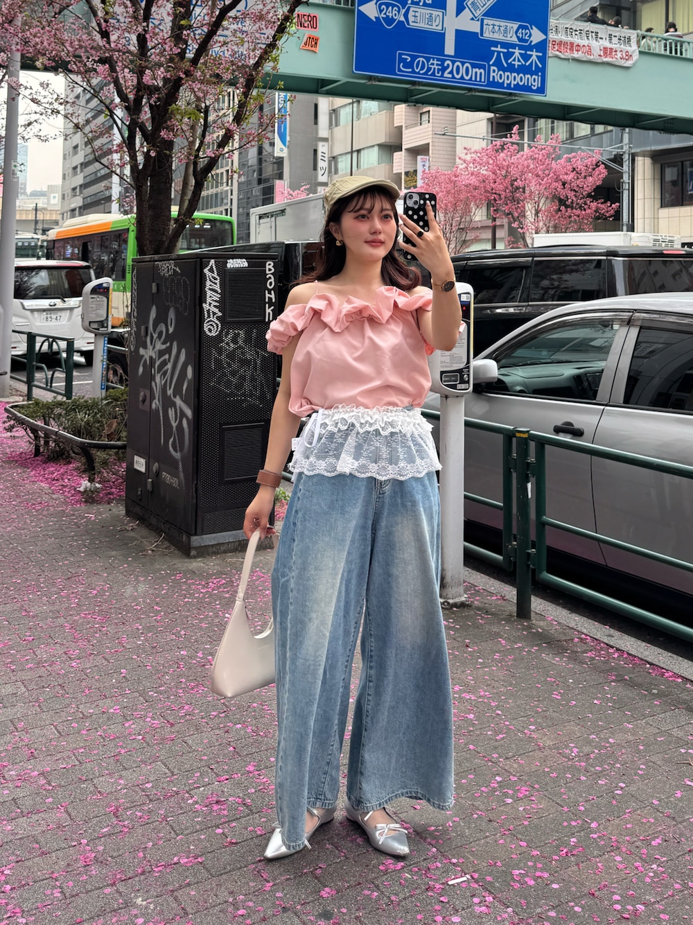 一足先に、、 春超えて夏なコーデですが…😮💨 桜に合わせてピンクを着たかった~ お気に入りのコーデ💖