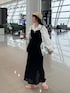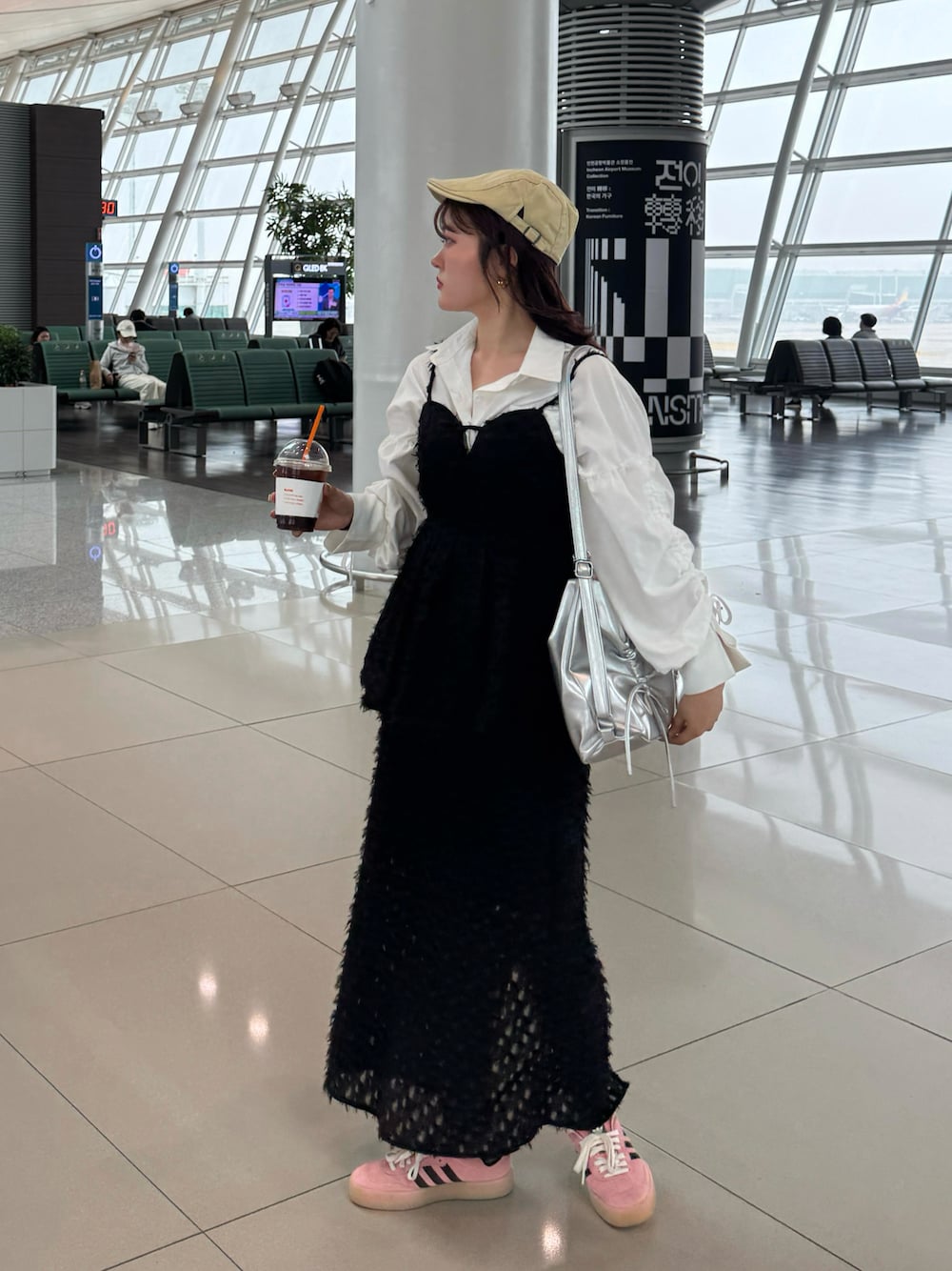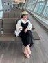 韓国に行った時の空港コーデ🇰🇷 このスカートは ウエストのバック部分がゴムになっているので 楽に履ける💕 2時間のフライトなので おしゃれしてみた💖