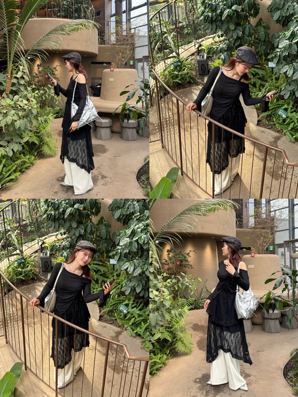 渋谷にある植物園に行って来た時のコーデ🏷️ 黒と白で 綺麗めカジュアルにまとめました✊🏻 ハンチング帽がコーデのアクセントになって可愛い🥹✨