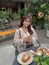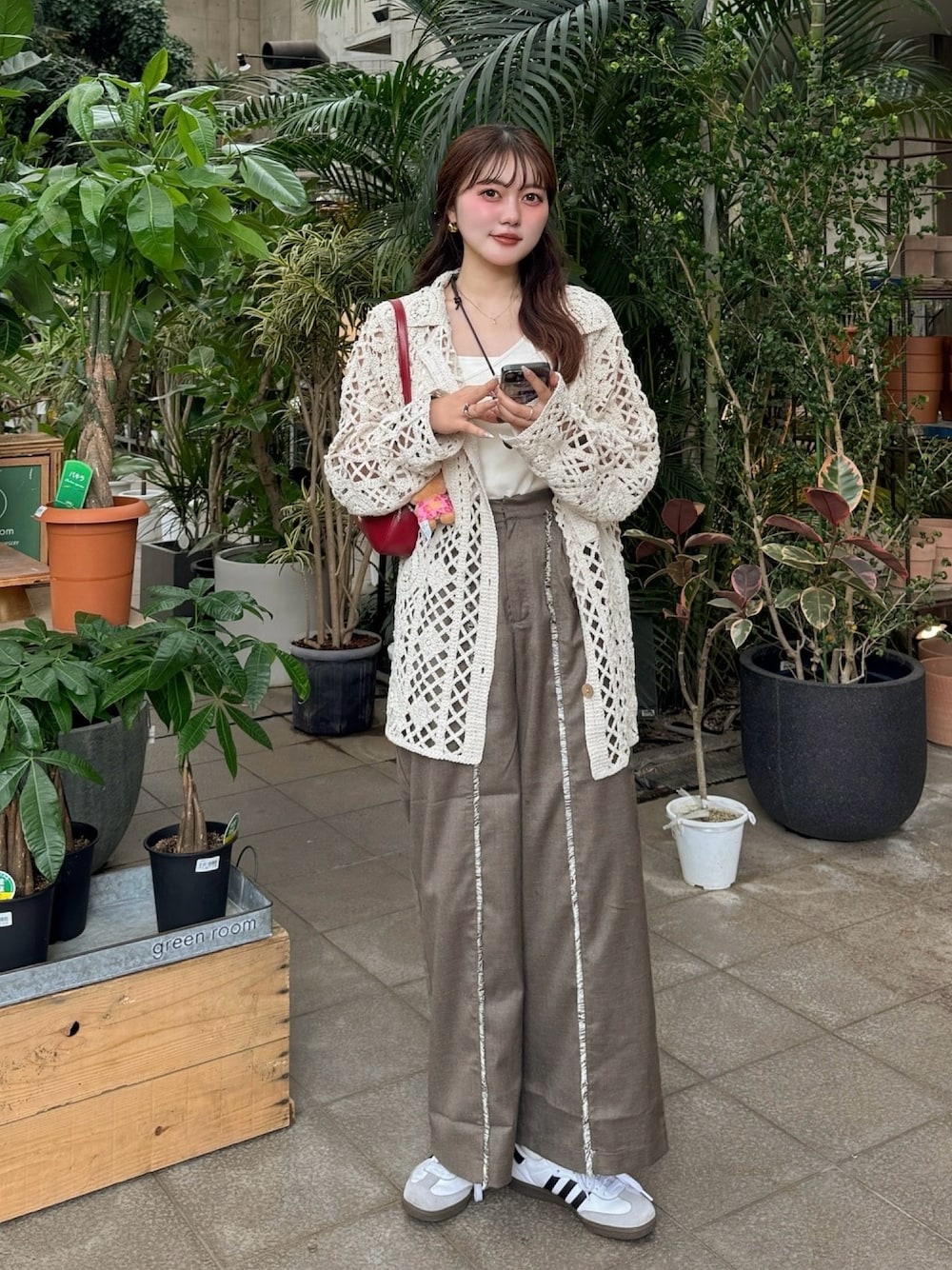 名古屋にある植物園みたいなカフェに行った時のコーデ🏷️ The Yonのレーストップス可愛い、、 赤バッグでコーデに締まりを持たせました✊🏻💭