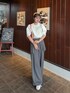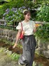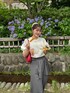 パフスリーブが可愛いサマーニット! 白なのでこの夏色んなコーデができるの楽しみ!🥰 レイヤードできるパンツは着回し抜群!🎶 今日は風が強かったので お団子にしました💖