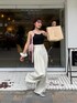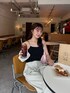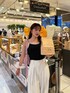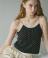 ドットのキャミソールが可愛い☺️✨ 綺麗めのスラックスを合わせて 甘すぎないコーデに🎶 靴はシルバーでコーデのアクセントに🙆