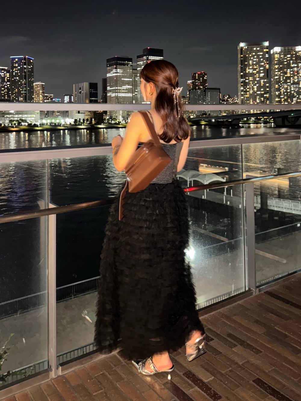 ホテルでのディナーだったので 綺麗めのおめかしコーデをしました✨ ボリューム感あるチュールのワンピとっても可愛い…🫢💕