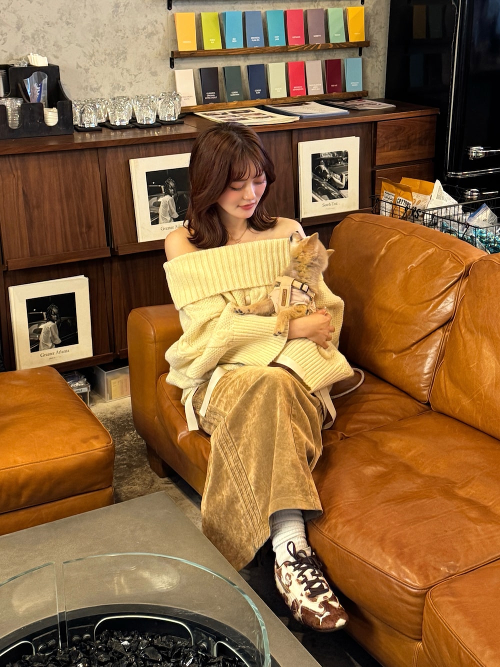 honokaのニット/セーター「ribbon stitch off shoulder knit / リボンステッチオフショルダーニット」を使ったコーディネート