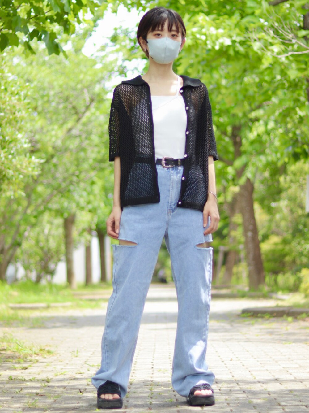 GRLのメッシュカーディガン透け感が程よい感じでいいですね! ベルトもつけてカッコよく、こなれ感出してみました👀 見ていただきありがとうございます♪ フォローして頂けたら嬉しいです😆