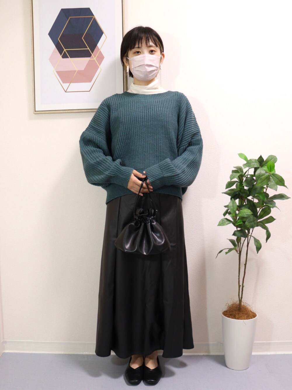 グレイルのニットとフェイクレザーのスカートで👗 グリーンのニットは着回し力もあって使いやすい! 見ていただきありがとうございます! フォローして頂けたら嬉しいです😆