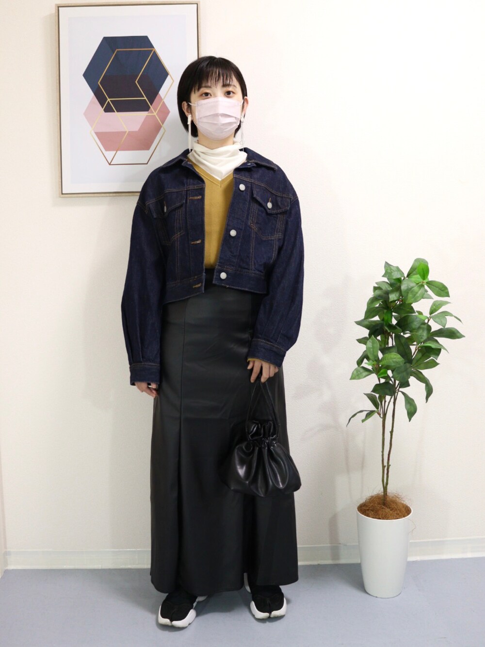 デニムジャケットとレザースカートの相性が良い◎ 見ていただきありがとうございます😊 フォローしていただけたら嬉しいです✨