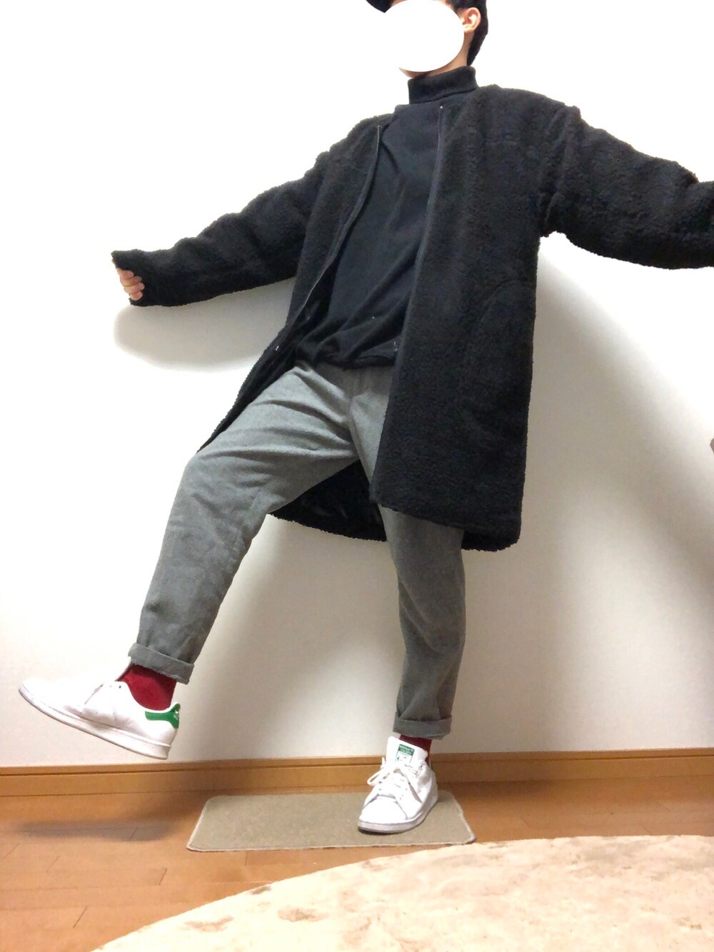ボアコート🧥めちゃくちゃ暖かくて着やすい!! ノーカラーだから童顔の僕にはいつもより大人っぽく見えてなかなか良いです😊