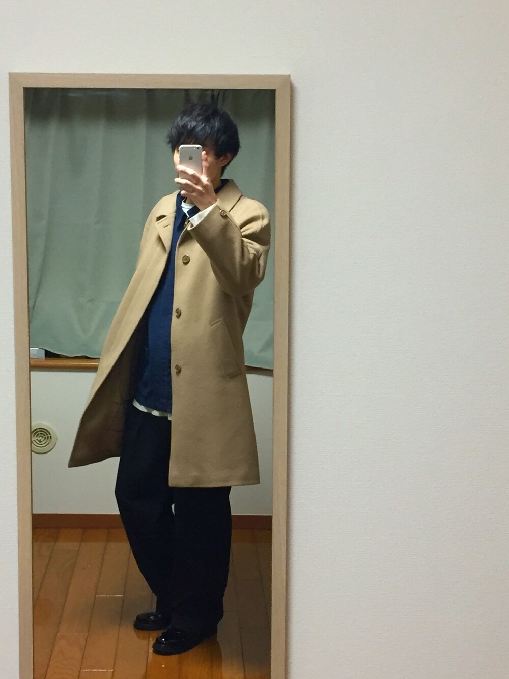 少しわかりづらいけど、、 アウター on アウター ステンカラーコートの中に ラルフローレンのワークブルゾン そう、 アウター on アウター。