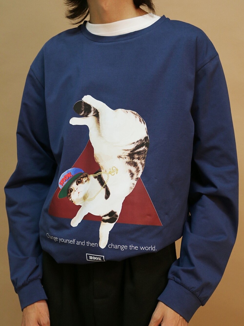 【HOOK -original-】【2020新作】数量限定!ユニセックス・ストリート/激カワ オリジナルプリント 長袖tシャツ オーバーサイズ 猫柄 --------------------【HOOK -original-】--------------------- HOOKのオリジナルプリントがついに登場! momoという名前のニャンチャンを主役として、色々なシリーズのプリントを展開! たまにサングラスをかけたり、キャップをかぶったり、ヒップポップに熱中! これからも様々な活躍をお楽しみください!~