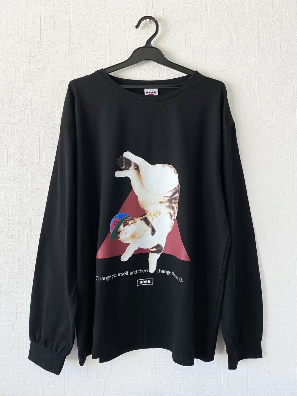 【HOOK -original-】【2020新作】数量限定!ユニセックス・ストリート/激カワ オリジナルプリント 長袖tシャツ オーバーサイズ 猫柄 --------------------【HOOK -original-】--------------------- HOOKのオリジナルプリントがついに登場! momoという名前のニャンチャンを主役として、色々なシリーズのプリントを展開! たまにサングラスをかけたり、キャップをかぶったり、ヒップポップに熱中! これからも様々な活躍をお楽しみください!~