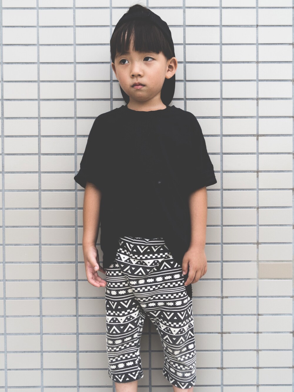 ブラック系のTシャツ/カットソー、ホワイト系のその他パンツを着用したキッズの秋コーディネートの1枚目の写真