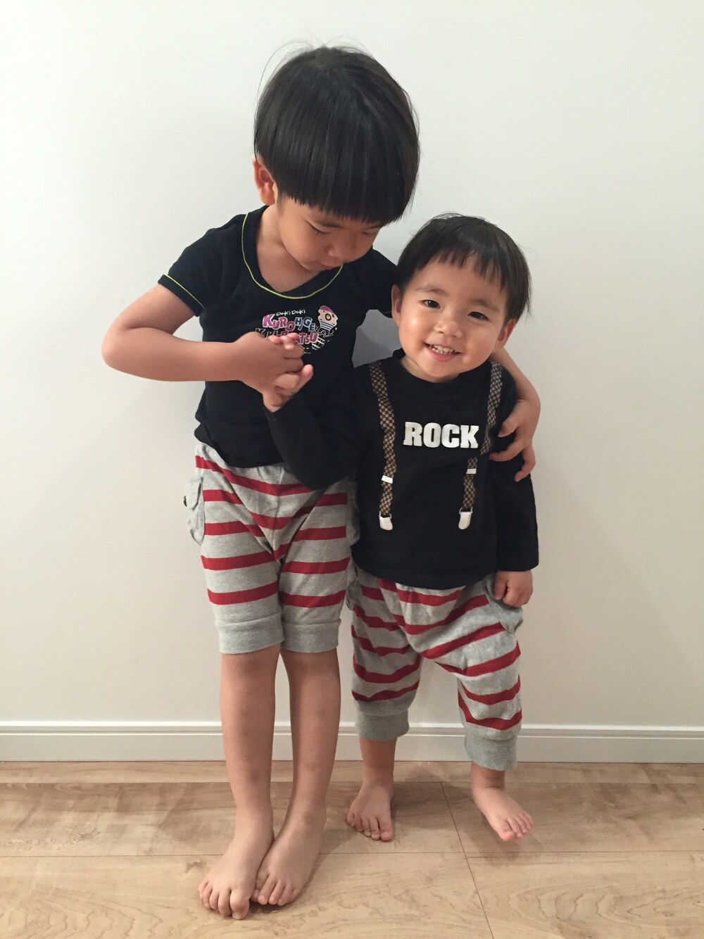 朝から、お揃いあるあるかましてくれました笑 お兄ちゃんパンツ小さすぎるでしょ笑