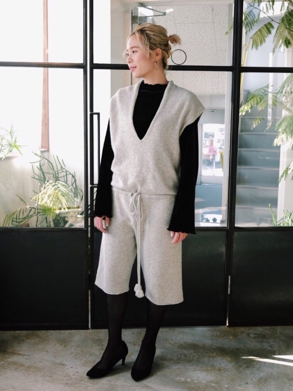 IENA ニットのオールインワン これが着れる季節になった♡ Instagramにも ヘアアレンジ動画など載せています! 是非みてください! ID honami_moriyama