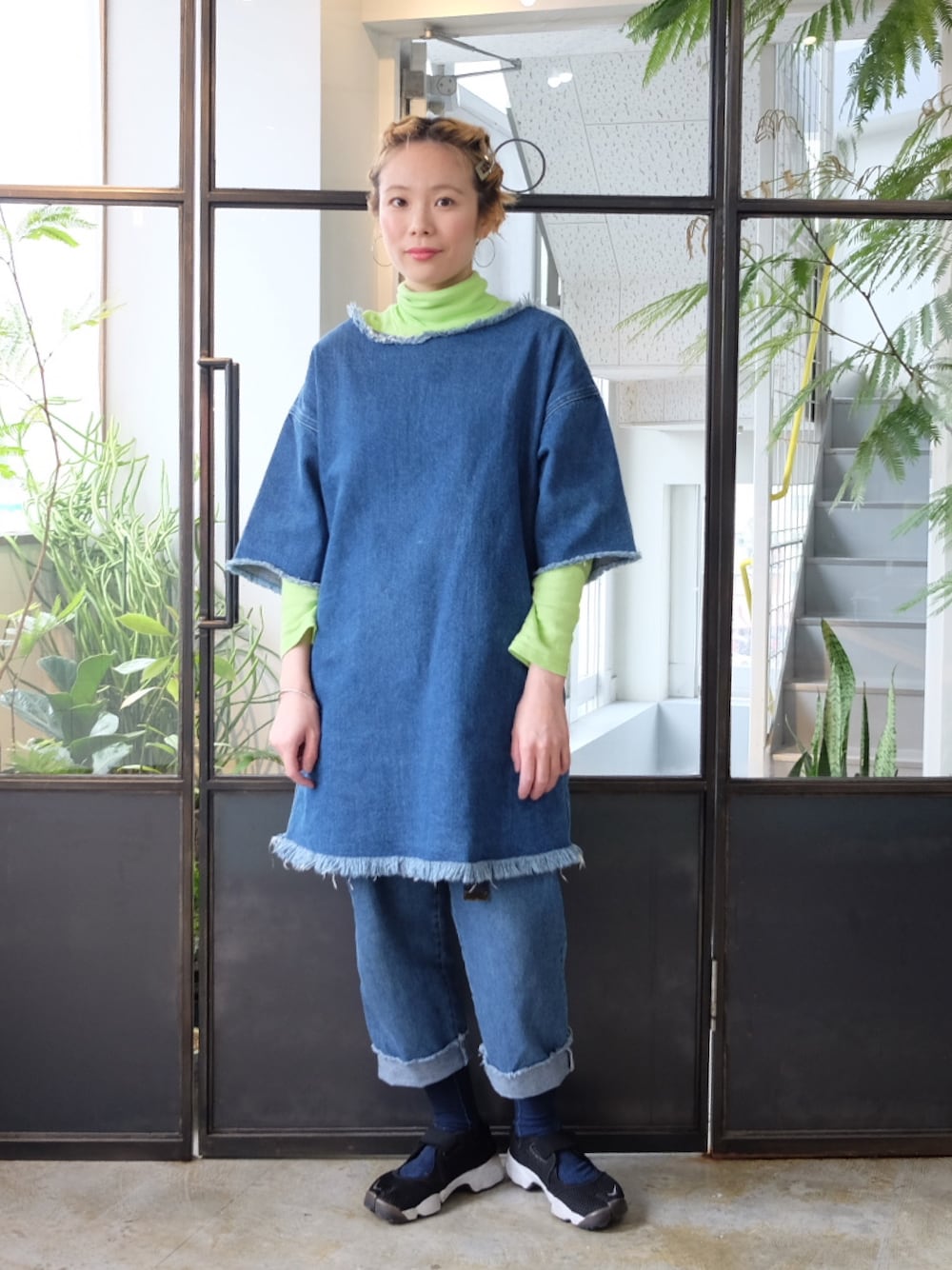 デニムオンデニム 蛍光グリーンのトップスと エアリフトでスポーティ