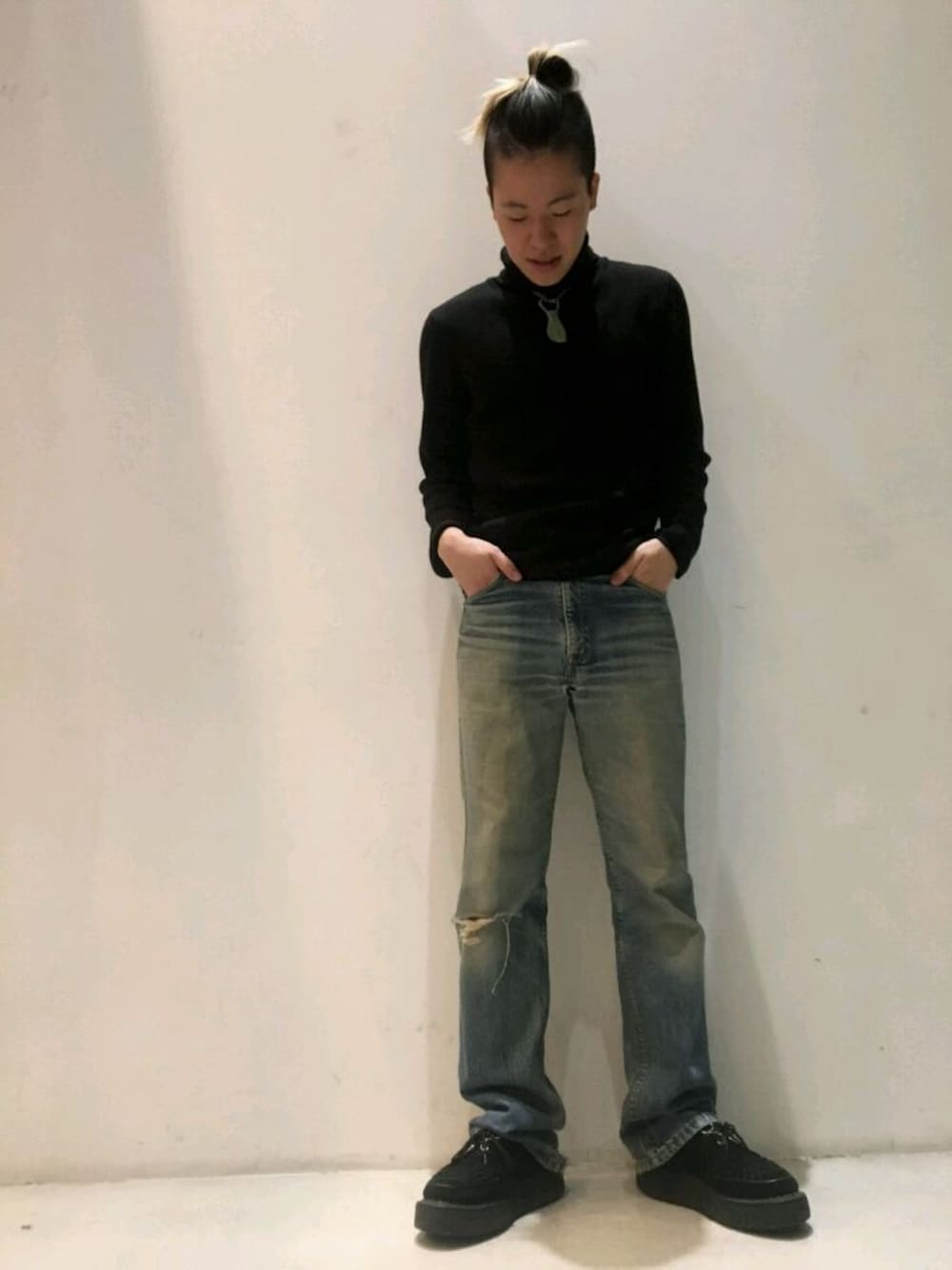 リーバイス517のデニムを主役に、全身古着でコテコテも可愛いけど、そんな気分でもない、、、 そんな時はデニム以外をシックに黒でまとめてデニムで抜け感を、、 ラフにまとめてみました。