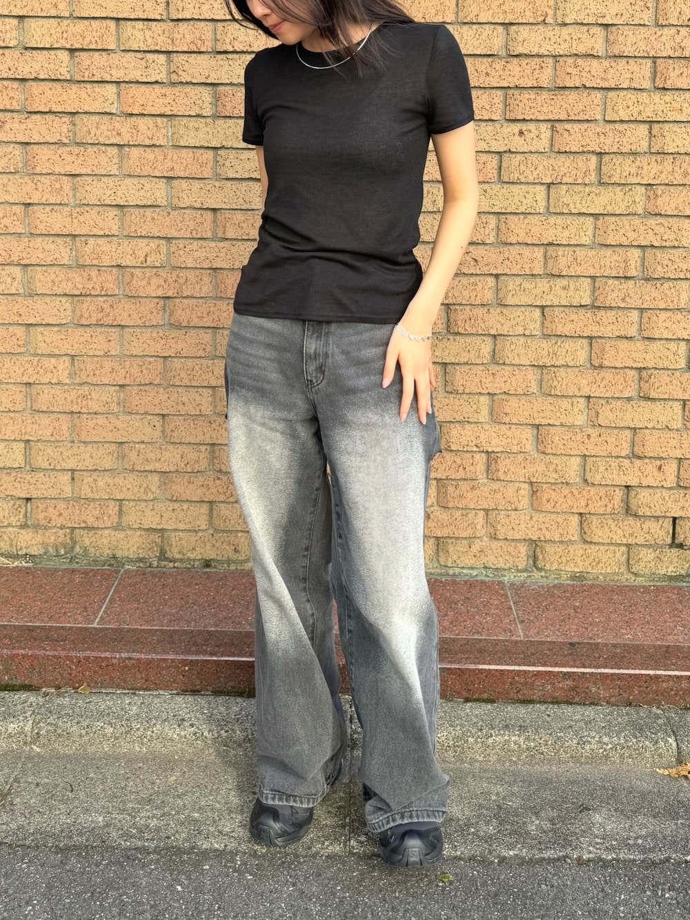 kiehtova人気のsheer topsを使ってオールブラックコーデ アクセサリーはシルバーの色味に統一。 まとまりのある洗練された印象に。