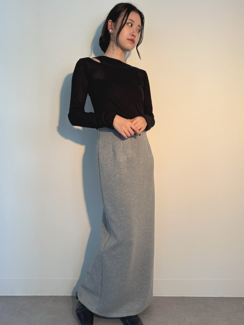 【kiehtova】 人気のレイヤードトップスとタイトスカートを使ったコーディネート タンクトップをレイヤードしたようなナチュラルに着れるカットソーは程良いシアー感もあり、体のラインを綺麗に見せてくれます。 シルエットの美しさにこだわったタイトスカートにタックインをしてスタイルアップ◎