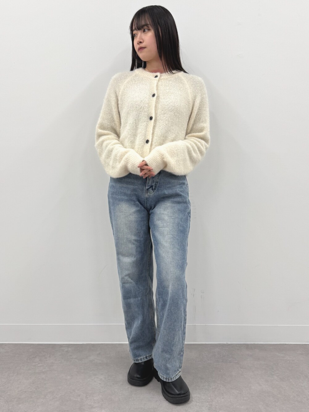 h.o.v_official(h.o.v)のカーディガン/ボレロ「【kiehtova】GLITTER SHAGGY KNIT/グリッター シャギー カーデガン」を使ったコーディネート