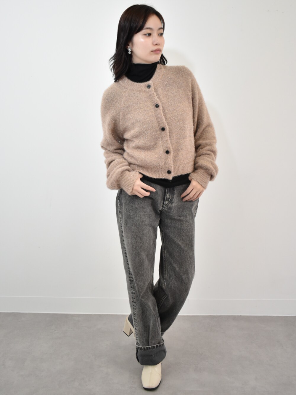 h.o.v_official(h.o.v)のカーディガン/ボレロ「【kiehtova】GLITTER SHAGGY KNIT/グリッター シャギー カーデガン」を使ったコーディネート