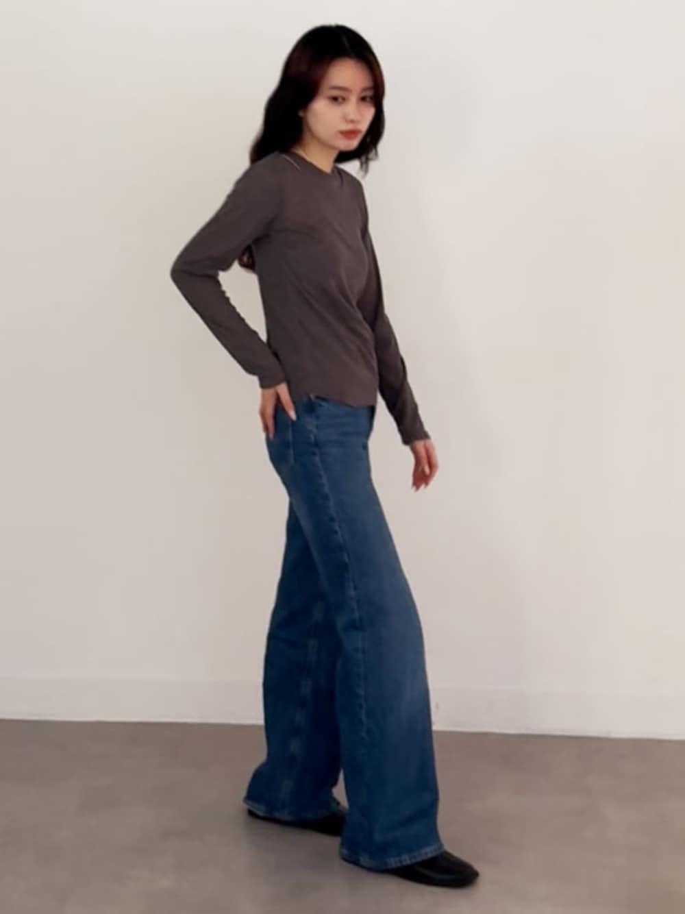 グレー系のTシャツ/カットソーを着用したレディースの春コーディネートの1枚目の写真
