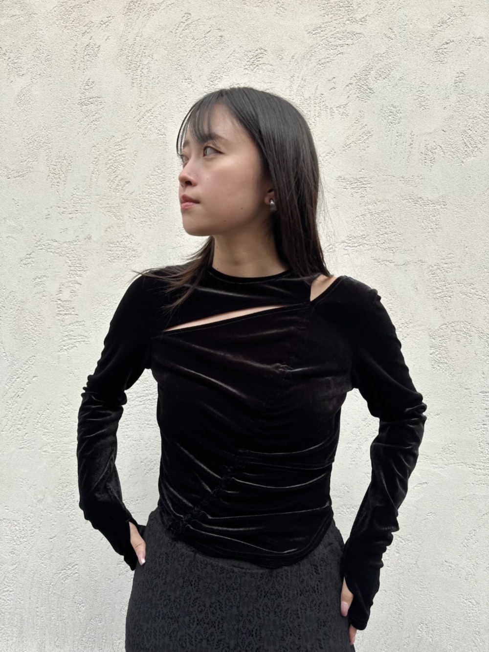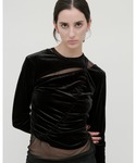 h.o.v_official(h.o.v)のTシャツ/カットソー「【kiehtova】VELOR SLIT GATHER TOPS/ベロア スリット ギャザー トップス」を使ったコーディネート
