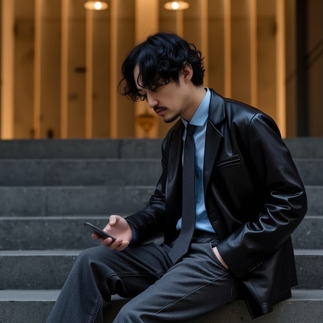 服好き 髭パーマ 黒系の服多め 服はほとんどネットで買います ほどよく肩の力が抜けたファッションが好み