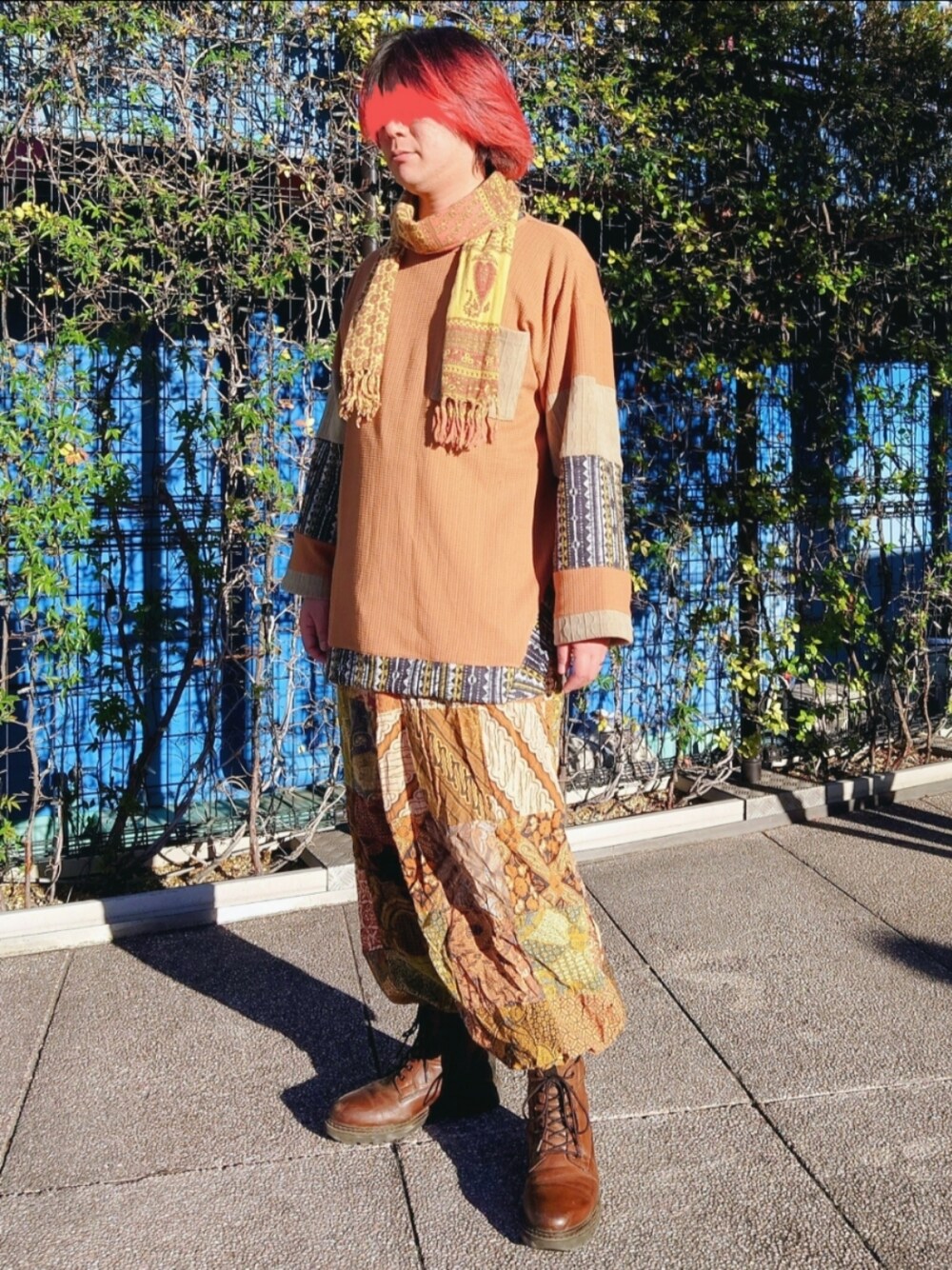 チャイハネのネイリアメンズTOPとGoaのストールを合わせてみた。 パンツは超昔買ったのでドコのだか判らぬ