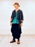 サワティカーデとドレメンメンズパンツに 紫のプルオーバーで涼し気な寒色まとめ