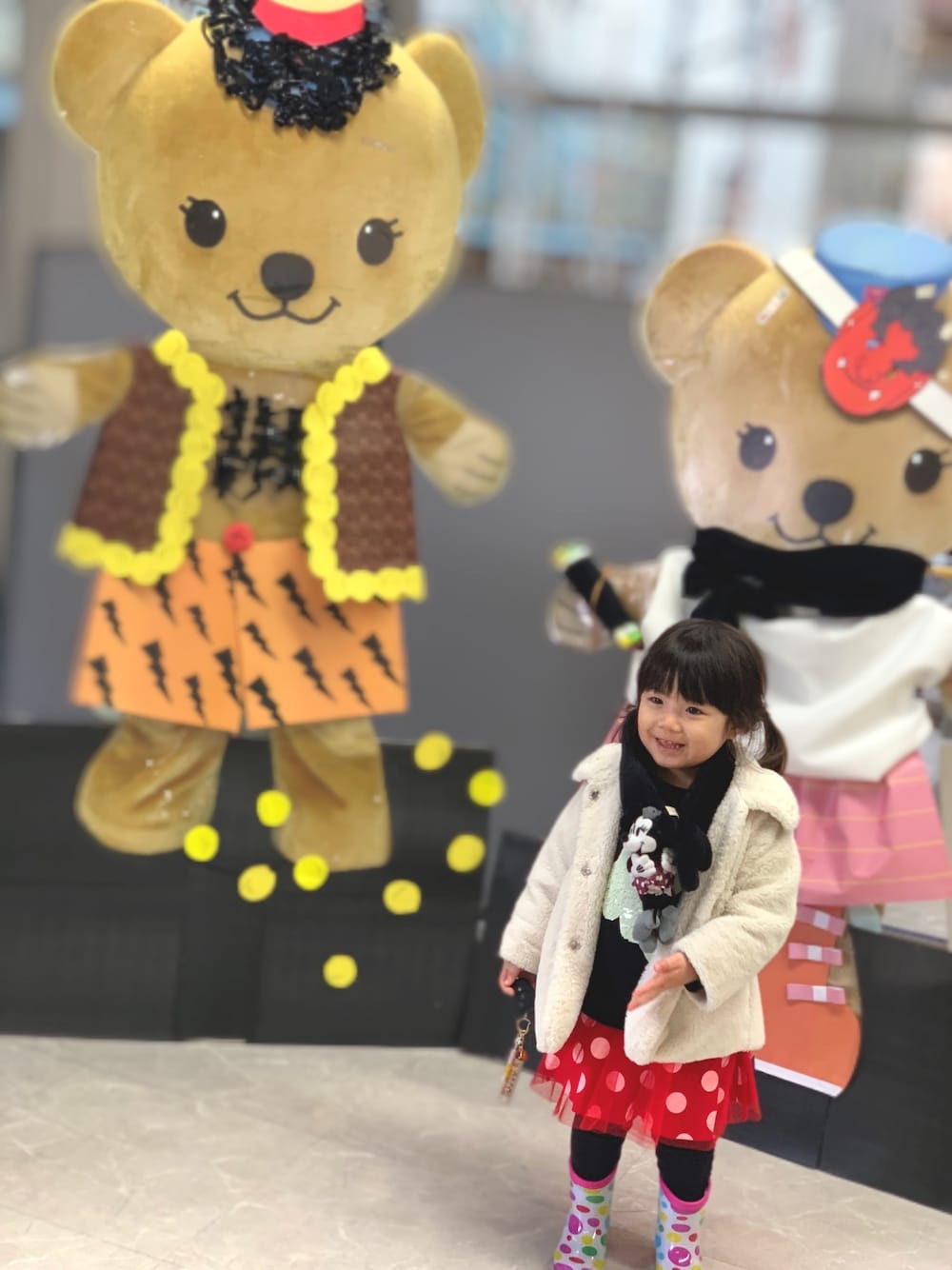 本日のコーデ❤️ ベビードール のミニーちゃん風水玉スカート が可愛い😍💕 今日は雨で長靴だったので、水玉✖️水玉で何かハデハデだけど😅☔️笑