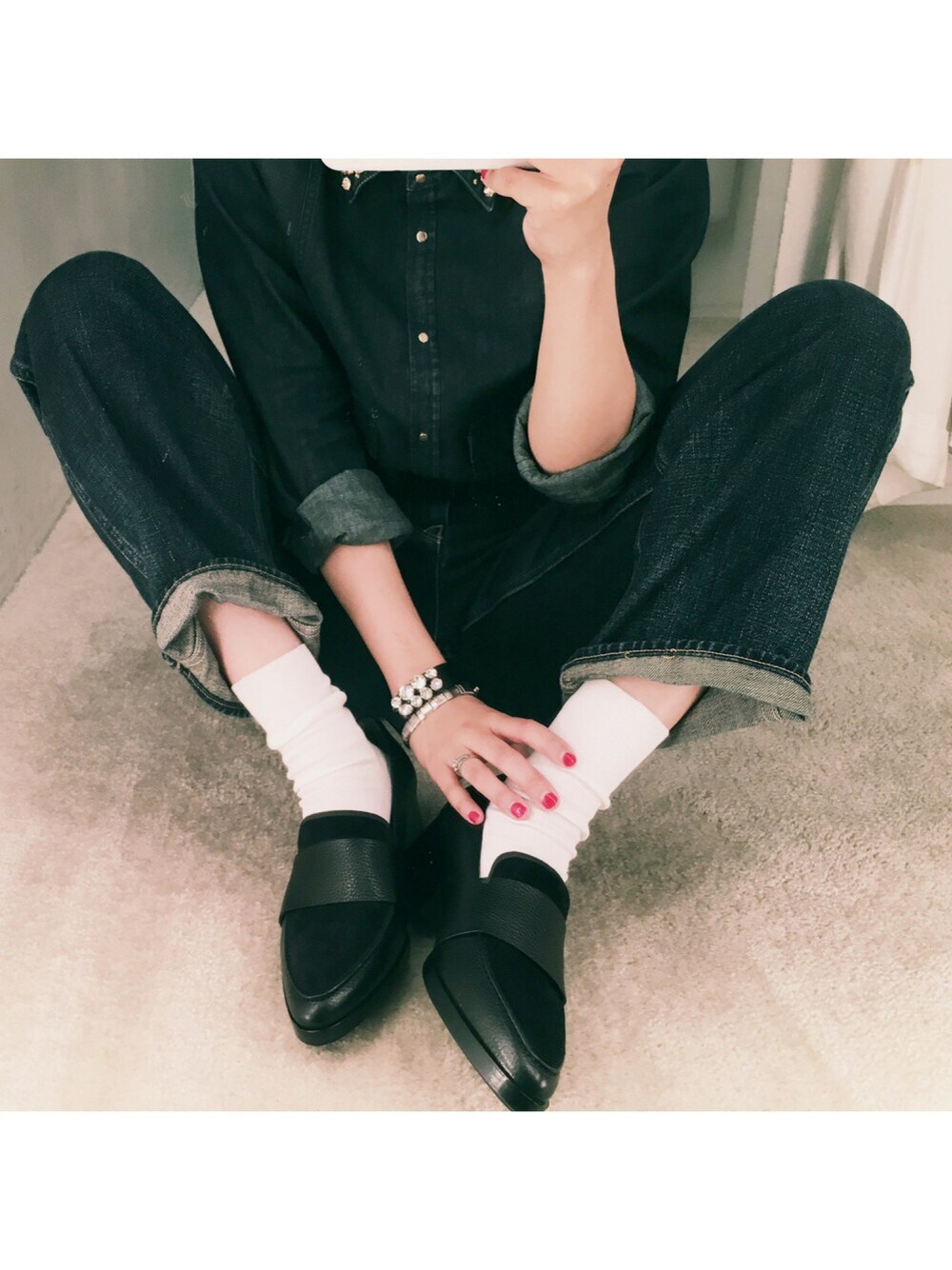 GOLDEN GOOSEで デニムonデニム💕💕💕 白ソックスローファー😤✌️ Instagram >>> @hori921
