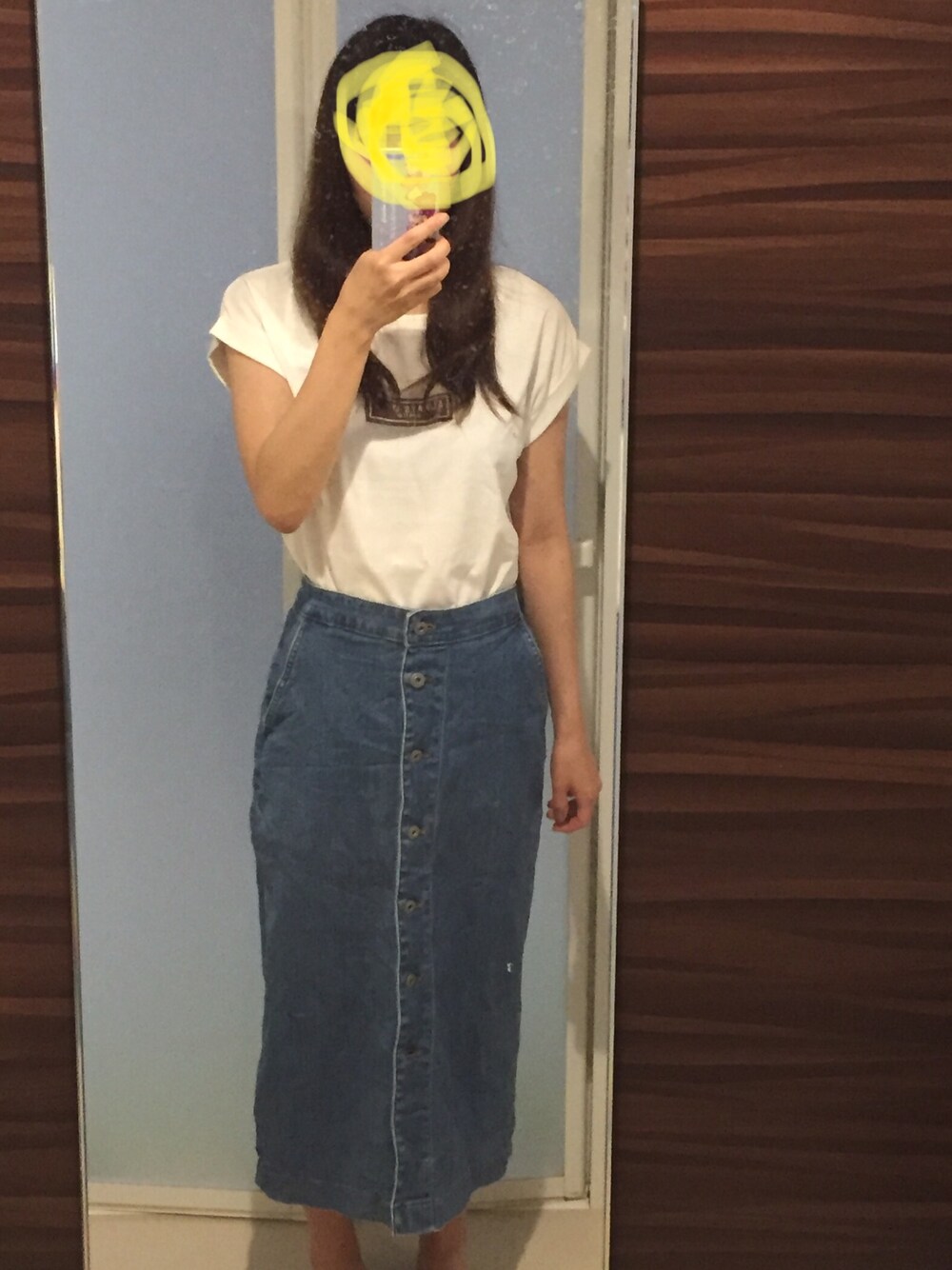 rikka のスカート「デニムフロントボタンミディスカート(丈標準75~77cm)」を使ったコーディネート