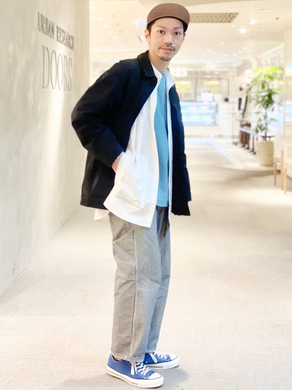 【ホワイト✖️ブラック✖️ブルー】 キレイなブルーを差し色にモノトーンで合わせました。 インナーとシューズのブルーを引き立たせるコーディネートです。