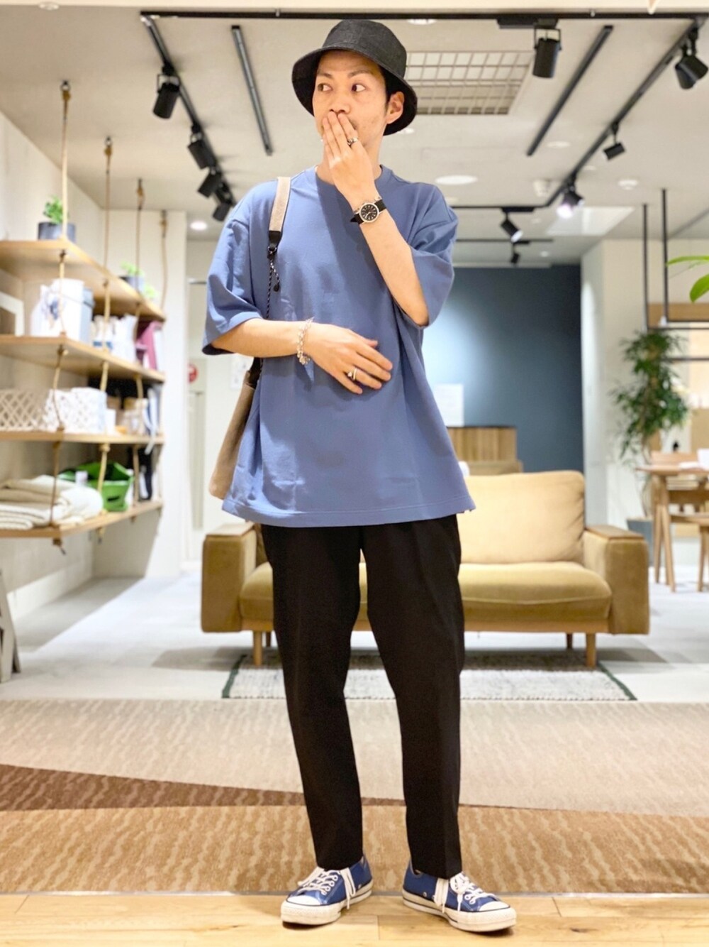【ブルー✖️ブラック】 4/23より販売開始のLACOSTE別注のTシャツで一足早くコーディネートしました。 ポロシャツで定評のある鹿の子生地で形から別注のクルーネックTシャツです。 ゆとりのあるサイズ感で動きもあり一枚でお洒落な印象を出せるのでオススメ! ブラックのアイテムと合わせて2トーンで大人な印象にまとめました