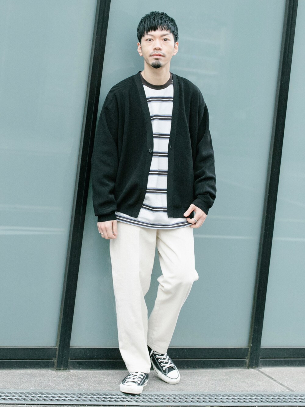 【ITEMS】 あらゆる羽織りのインナーと合わしやすいボーダーカットソーが入荷! 今回はカーディガンとホワイトデニムでモノトーンでボーダーの色も白黒でまとめました!