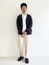 【DOORS】 モノトーンで全身コーディネートしました。 オーバーサイズのシャツはアームホールのゆとりあるカーディガンとバランスがGOOD! 今はインナー、夏は羽織と使いたいシャツ&カーディガンはこちらがオススメ!